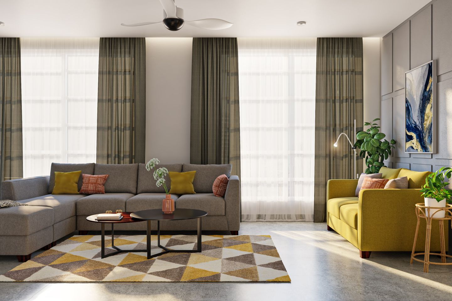 Modern Living Room Design With A Grey Upholstered L Shaped Sofa