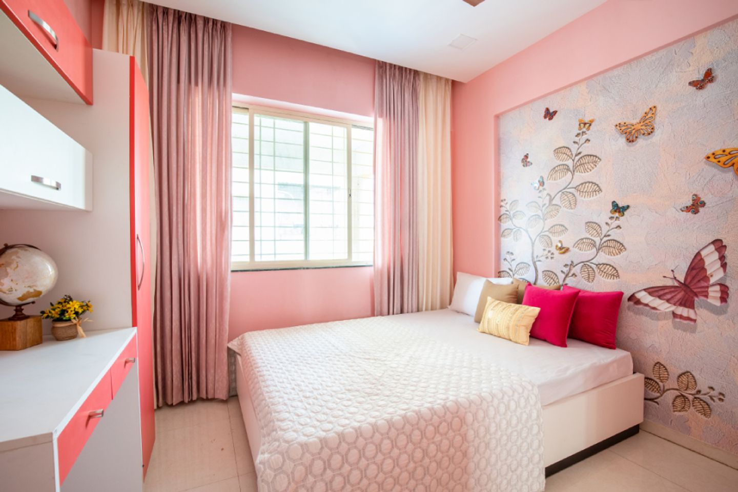 Contemporary Kids Room Design For Girls With Floral Upholstered Headboard